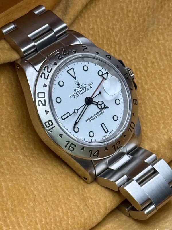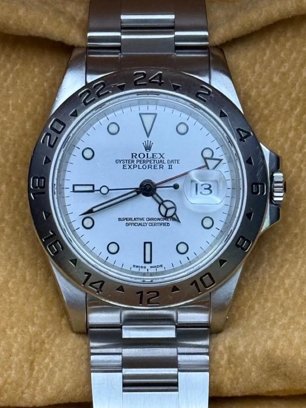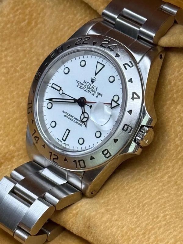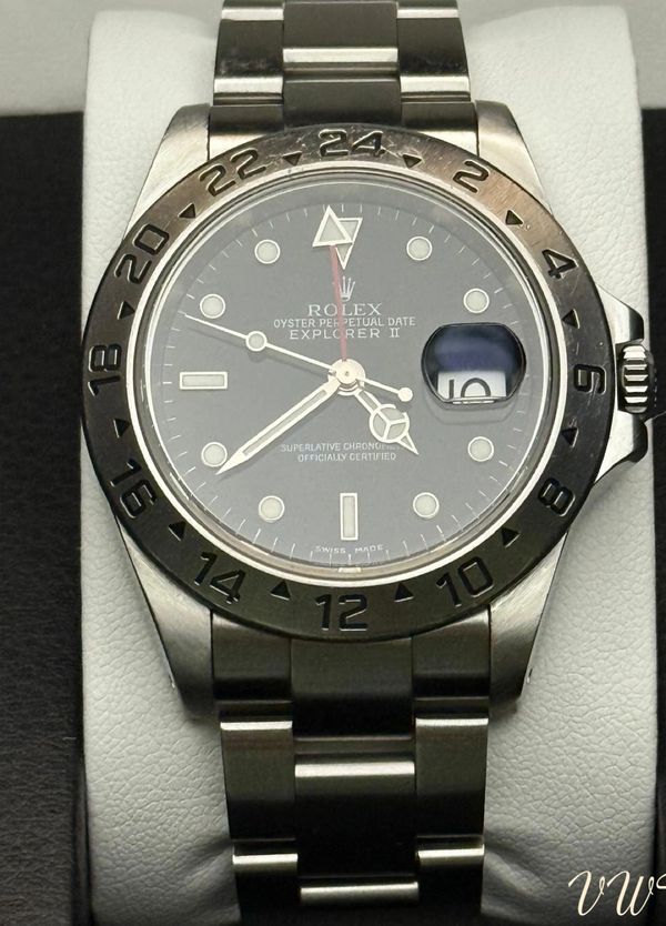 Rolex Explorer II "Polar". Late 1990's with Rolex box. 40mm case with hollow end link bracelet. Wire transfer only. $7450 USD