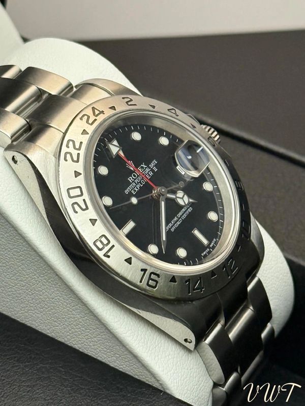 Rolex Explorer II 16570. Full set box and papers, 40mm case, has solid end links. 1999-2000. Wire transfer only. $7950 USD