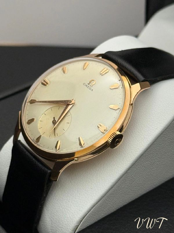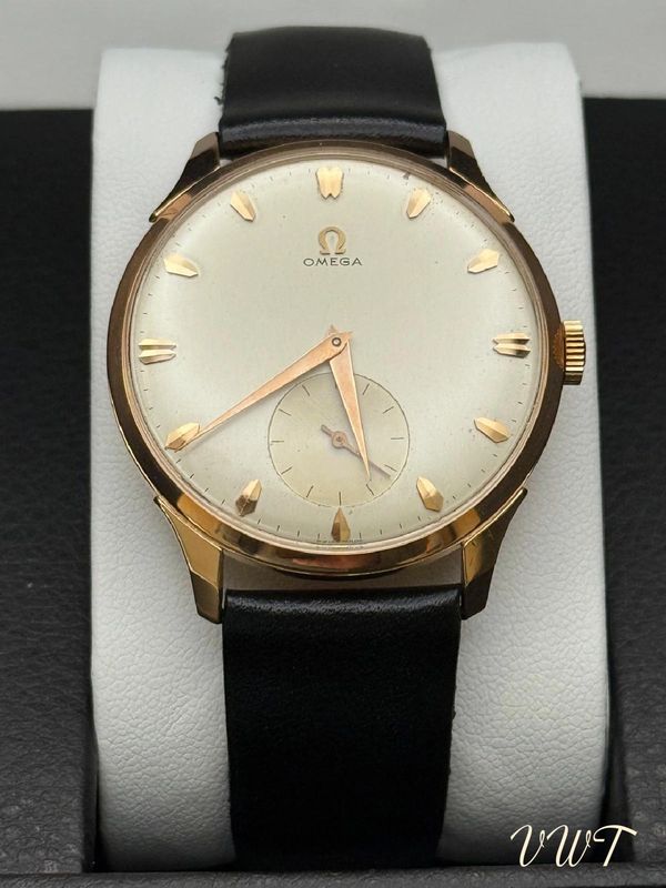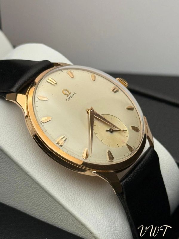 ***SOLD*** Omega 18K rose gold from the 1940's. Manual winding with signed case, crown, and movement. Large 37mm case.